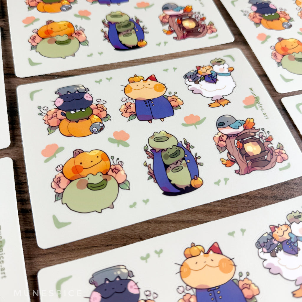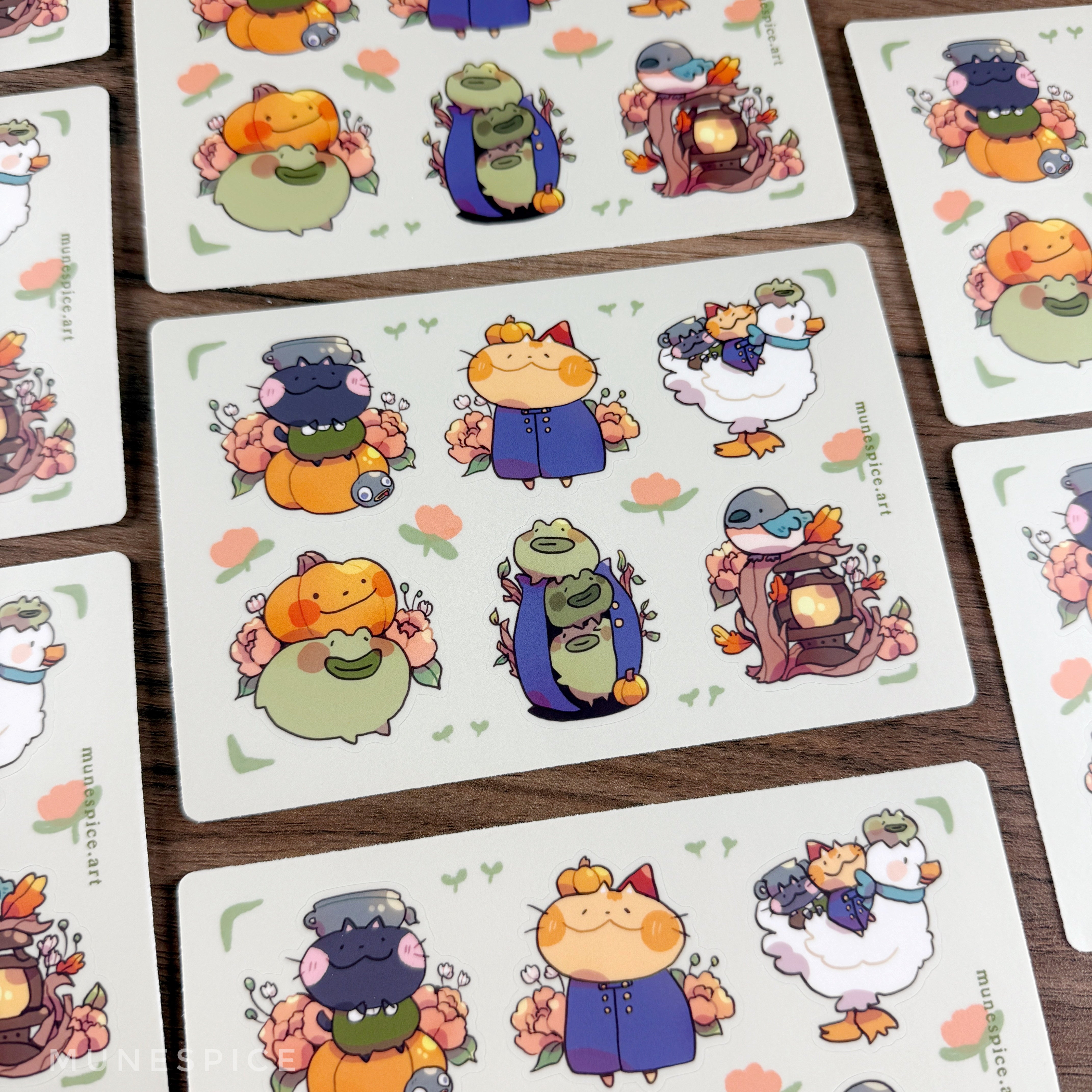 I actually drew these as decor pieces for my wedding but a year later they are in sticker sheet form. They feature my cats dressed as some lovable brothers finding their way through the woods.