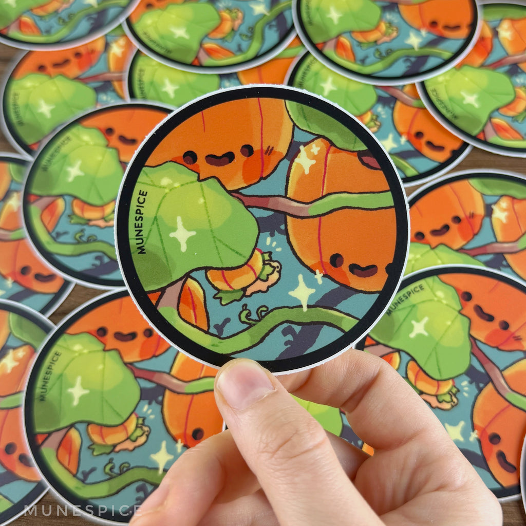 - ~3" at its widest/tallest, matte die cut sticker